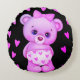 Fuchsia Heart Print Teddy Bear Sierkussen Rond Kussen
