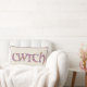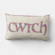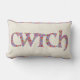 Een leuke lumbale kussen met het Welsh woord 'cwtch', dat 'knuffel' of 'knuffel' betekent in een Keltisch script, gevuld met een bloempatroon.