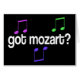 Kleurrijke muzieknoten dansen rond de lol Heb je Mozart? slogan over het uitzetten van stuffers en geschenken van klassieke muzikanten .