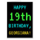 Wenskaart Dit eenvoudige, leuke verjaardagsverjaardagsfeestje is voorzien van een bericht als "HAPPY 19th BIRTHDAY, GEORGIANA!". Het heeft ook een leuke, pixelachtige uitstraling die doet denken aan het uiterlijk van retro of klassieke computerspellen van de jaren 80 en begin jaren 90. De naam op de voorkant en de boodschap aan de binnenkant kan worden gepersonaliseerd. Het kan worden verzonden of gegeven aan iemand die zijn negentiende verjaardag viert en die graag klassieke computerspellen speelt. [~Z0000099]