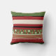 Een kernige Santa jonglepjes slee bells op dit leuke kussen voor het kerstseizoen. De kussen zijn voornamelijk een mix van roomkleurige, rode, zwarte en groene brede panelen, en elk paneel bestaat uit of een ontwerp, poka dots of strepen. De moderne, uitziende Kerstman met zijn brede krullende snor en kleine benen staat uit de drukke achtergrond door op een gewoon groen vierkant te worden geplaatst.