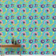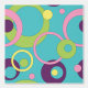 Een heldere blauwe achtergrond is voorzien van een funky patroon van cirkels, stippen en ringen in verschillende levendige kleuren, waaronder roze, groen, paars en geel.