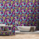 Een levendige paarse achtergrond wordt voorzien van een funky patroon van cirkels, stippen en ringen in een verscheidenheid van heldere kleuren, met inbegrip van roze, groen, blauw, en geel.