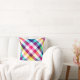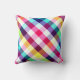 Een 16" x16" gooi kussen met een kleurrijk geruite patroon ontwerp in regenboogkleuren.
