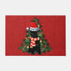 Funny black labrador festive red burlap Kerstmis Deurmat
