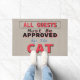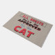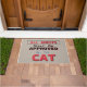 Familie en vrienden zullen een kaukel krijgen als ze deze grappige en grappige deurmat lezen. Moderne welkomstgasten met een duidelijke boodschap: alle gasten moeten door het Kat worden goedgekeurd. Moderne, zwarte, rode, witte en blauwe typografische stijlvolle prijsopgave. Bruin getextureerde achtergrond.