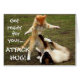 De foto van de actie van katten speelt strijdend met slogan "maak je klaar voor je aanval knuffel" terwijl de gemberkat zich voorbereidt om met uitgeruste pokken te proppen.