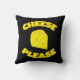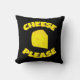 Voeg een grappig en kaasachtig accent toe aan uw kamerdecor met deze kussen die een afbeelding van een wig kaas en de tekst "KAAS PLEASE" bevatten.