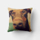 Een leuke en grappige foto van een nieuwsgierige en inquisitieve doberman hond, met een grote bruine neus, zachte bruine ogen en natuurlijke floppyoren. Foto aangeraakt om het een oude nostalgische kwaliteit te geven.