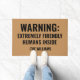 Give your guests fair warning with this hilarious welcome mat! This "design your own door mat" features the bold proclamation: "WARNING: EXTREMELY FRIENDLY HUMANS INSIDE," with a charming, intentional misspelling to add to the humor. It's the perfect way to greet visitors at your front porch and let them know they're entering a fun and welcoming home. Customize it with your family name to make it a truly personal piece. This makes an excellent and unique housewarming gift.