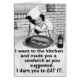 De volgende keer dat een chauvinistisch/seksistisch man hetzelfde zegt, voorspelbaar "ga naar de keuken en maak me een sammich" lijn, wijs dan naar de hete comeback op dit wenskaart. Het show een vrouw met een trotse glimlach op haar gezicht en een reuzenbroodje voor haar, naast een fles gif. In de tekst staat: "Ik heb je een boterham gemaakt zoals je voorstelt. Ik durf het je op te eten." Want wie je voedsel controleert, controleert je lot. Klik op "Aanpassen" als je je eigen bericht aan de binnenkant wilt toevoegen.