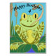 Deze kleurrijke kinder bewerkbare leeftijdkaart is voorzien van een grappig ontwerp van een kikker van de cartoon die op een lantaarnstang zit.