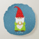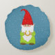 Moderne grappige gnoom met een hoefijzer op sapphire blue Round Pillow.
