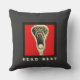 Rode lacrosse sportkussen voor speler of teamcoach, met lakstick en de woorden: hoofdsteun.