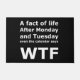 Vreemde maandag dinsdag WTF citaat van deur Mat. Aanpassen met naam. Geweldig geschenk voor appartement, hut, kamper, open huis, huisverwarming, man grot, of ze doet het.