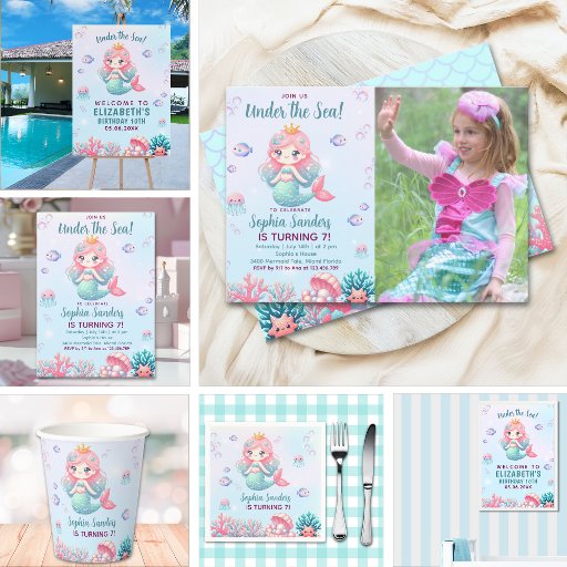 Celebrate your little mermaid with our cute mermaid-themed birthday girl design. This cute and fun design has a festive touch of the sea, perfect for a birthday party for a girl who loves mermaids! The design has the details for you to fill out with your celebration details. Check out my collection for complementary elements to celebrate that beautiful little mermaid.