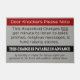 Deurknoppen Let op. Dit huishouden kost $50 per minuut om te luisteren naar verkooppraatjes, religieuze berichten en verhalen te financieren. Deze heffing is vooraf verschuldigd. Door op je te kloppen, geef je je instemming. Dit is een geweldige manier om op een slimme manier van die pesky deursluiters af te komen. Het zal ook je vrienden en familie aan het lachen maken. Dit is een geweldig cadeau voor huisopwarming!