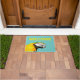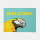 Grappig portretfotografie van een papegaai op een blauwgroen achtergrond, die je kunt personaliseren met je eigen tekst.