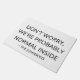 Welcome guests with a dose of humor with this personalized outdoor rug. Featuring the funny saying, "Don't Worry, We're Probably Normal Inside," it's the perfect way to greet friends and family at your front door. This durable welcome mat can be customized with your family name, making it a unique addition to your porch decor or a hilarious housewarming gift for a new homeowner. Made for outdoor use, it's designed to handle foot traffic while keeping your entryway clean.
