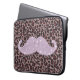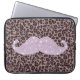 Funny Roze Bling Mustache en Animal Print Pattern Laptop Sleeve