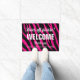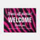 Grappig schoeisel uit teken op aangepaste roze zebra print welkomstdoormat. Eigen deurmat voor familie, bedrijf, bedrijf, winkel, salon, winkel, kantoor, nieuw zaad, Mr. and mrs. etc. Voeg uw eigen leuke bericht, adres, huisnummer, familienaam, monogram, familienaam of humoristische prijsopgave toe. Cool cadeauidee voor nieuw huis, open huis of huisverwarming. Stijlvolle sjabloon voor moderne typografie met een natuurlijke achtergrondtextuur. slaapbord. Creëer je eigen humor mat, tapijt voor de voordeur, de ingang of de hal. decoraties voor uw huis. Ideeën voor 'n decor voor 'n nieuw huis. Verkrijgbaar in kleine en grote/grote afmetingen.