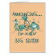 Funny Veggies New Big Sister T-shirts, bodypakken, sleutelkettingen, knoppen, tassen, mokken, stickers, kaarten en andere grote zusjes met verschillende gekke veggies met ogen en tekst die luidt: "Anouncing...ik ben een NIEUWE BIG SISTER!!".