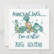 Funny Veggies New Big Sister T-shirts, bodypakken, sleutelkettingen, knoppen, tassen, mokken, stickers, kaarten en andere grote zusjes met verschillende gekke veggies met ogen en tekst die luidt: "Anouncing...ik ben een NIEUWE BIG SISTER!!".