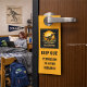 Set against a prehistoric moonlit scene, the bellowing Velociraptor gives a fierce and funny message to your potential visitors: this colorful Velociraptor doorknob hanger features two bold messages: “Keep Out” and “Permission to Enter Required.” Perfect for Dinosaur fans of all ages.