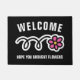 Funny Welkom deurmat | Hoop dat je bloemen meebracht. Maak uw eigen gepersonaliseerde humoristische binnen- of buitenkant slaapbord met aangepaste achtergrondkleur en tekst. Voeg uw eigen welkomstbericht, bedrijfsnaam, familienaam, initiaal letters of grappige quote toe. Fun gift-idee voor nieuw huis, kantoor, verhuizing, winkel, sportwinkel, bedrijf, bedrijf, club, feestplaats, huisverwarming enz. sjabloon met moderne typografie. Creëer je eigen leuke mat / tapijt voor voordeur / ingang of hal. decor en decoraties voor je huis. Cute Bithday gift idee voor vrienden, familie, kinderen, enz. Zwart-wit ontwerp met schattig roze, roze logo. Verkrijgbaar in kleine en grote afmetingen.