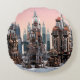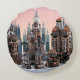 3D digitale weergave van een science fiction futuristische stad op een roze achtergrond