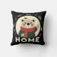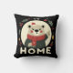 Een humoristisch ontwerp van een gookkussen met een vakantiethema met een schattig beer met een kerstmuts en sjaal, wijzend met een serieuze expressie. Omgeven door feestelijke elementen zoals hulst, bessen en ornamenten, voegt de tekst "Go Home" een speelse draai toe. Ideaal voor een vakantie inrichting met een vleugje humor en charme.