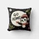 Een humoristische vakantie-thema gooi kussen ontwerp met een schattige aap dragen van een Santa hoed en sjaal, wijzend met een serieuze uitdrukking. Omgeven door feestelijke elementen zoals hulst, bessen en ornamenten, voegt de tekst "Go Home" een speelse draai toe. Ideaal voor een vakantie inrichting met een vleugje humor en charme.