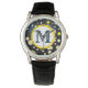 Galaxy Sky Daisy Bloemen Monogram Letter Donkerbla Horloge