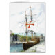 Een van Chalestown's grote schepen 'gekleed' als een oude Galleon voor een filmproductie. Uit de oorspronkelijke waterverf van Christine Hudson.