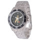 Game of Cricket, Bat and Ball wrist watch. Behandig crickethorloge geplaatst tegen een zwarte achtergrond.