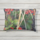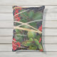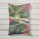 Het afbeelding op dit Outdoor / Indoor Accent Pillow is gemaakt van een originele foto van ZoeSPEAK van een snelle kleine bries die door de gedroogde palmbladeren fladderde over de rode kalanchoebloemen met hun wasachtige groene bladeren in de tuin.