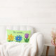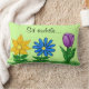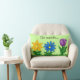 bloemetjes in goudgeel, blauwgeel madeliefje en paarse tulp in bloei in het tuingras sieren deze decoratieve werpkussens met een verfrissende lichtgroene achtergrond. Sit Awhile is geschreven in zwarte tekst. Klik op Aanpassen om tekst aan de achterkant van het kussen toe te voegen. Heerlijk voor de lente- of zomermaanden of op elk moment van het jaar om het buitenleven binnen te brengen. Origineel handgeschilderd kunstwerk van TamiraZDesigns.