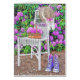 Paarse hoge sneakers met een pet op een teenwilderstoel in een rhododendron tuin.