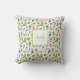 Superschattig dubbelzijdig kussen in de open lucht met een kleurrijk patroon van tuinbouwgereedschap en het initiaal en de naam van het tuinbouwmonogram. Ideaal voor een veranda, een patio, een poolgebied of een tuinschuur.