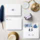 Delicate blauw-witte rozen met Bridgerton Regency-stijl accenten omringen twee klassieke mannelijke cameo's, allemaal geplaatst tegen een heldere witte achtergrond.