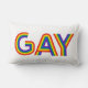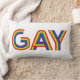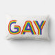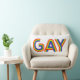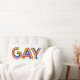Dit kunstwerk kenmerkt het woordGay in een kleurrijke regenboogdoopvont.