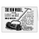 In deze advertentie van de grasmaaier staat een mooie handgetekende illustratie van een retro push-grasmaaier en een oud tijdtype dat uitlegt hoe geweldig de gadget is. Al die vormen een grappige, ouderwetse advertentie.