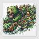 Drie geanimeerde, stilistische beren verschijnen in een dynamische en grillige scène terwijl ze een klassieke groene auto door een abstracte en kleurrijke omgeving rijden. Het grootste beer, met een expressief gezicht, neemt de leiding, terwijl de anderen vrolijk meedoen aan het avontuur. De wervelende patronen en vurige motieven eromheen dragen bij aan de fantastische natuur van dit kunstwerk.