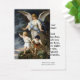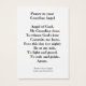 Het afbeelding van de beschermengel waakt over het kleine meisje en het jongetje. Op de achterkant is het Gebed tot Uw beschermengel van God, mijn beschermengel lief, aan wie Zijn liefde mij hier verplicht, altijd deze dag (of nacht) aan mijn zijde te zijn, te lichten en te bewaken, te regeren en te begeleiden. Amen.