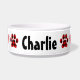 Naam en schattige rode geblokte pootafdrukken met rode harten, hondenvoer keramische kom. Pas het aan met de naam van je harige vriend! Neem contact met mij op voor verdere aanpassingen voordat u een bestelling plaatst. Bedankt voor een bezoek aan onze winkel! Auteursrechten stijgen in stijl Design