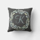 Geborduurd gepersonaliseerd, blauw en groen met grijze achtergrond, sierkussen met bloemenkrans