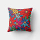 Borduurwerk abstract madeliefbloempatroon in rode, gele, blauwe en groene kleuren.