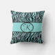 Geborduurde Zebraprint Zeegroene Turquoise Aqua Zw Kussen