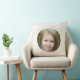 Gecentreerde cirkel afbeelding omlijst door gebogen script naam en serif datum onder in drift taupe. Gelegen op een ivoren achtergrond, brengt dit neutraal getinte kussen doordachte details met zacht contrast en een schone lay-out voor het presenteren van uw moment.