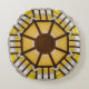 Het is een mooi kussen met het levenswiel er op. Je ziet dat het een afbeelding is van een tempeldeur of wand, het hout is herkenbaar. Het past geweldig in ons interieur: een beetje Zen, maar wel kleurig. Mooie kleuren, zoals op de afbeelding.